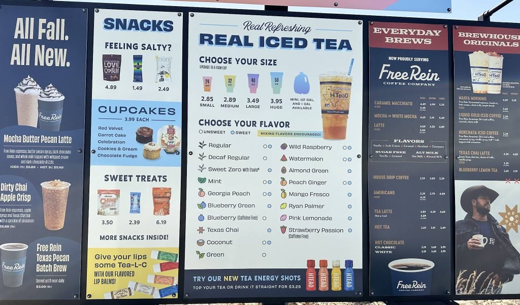 The drinks on the HTeaO menu are dominated by tea, the most well known contribution to a list of specific items that are customer favorite refreshing beverages in this case as iced teas. The bestseller list comprises Sweet Almond Green Tea, Texas Chai Tea and the all time favorite Sweet Regular Iced Tea that people drink as a snack or an after-meal beverage and which is also consumed with the Peach Ginger Tea and Mango Fresco Tea, t0P that are fruit flavors. The demands of fewer sweetening are not left behind and this is mainly done by the Unsweet Black Tea and Green Tea. Exclusive blends other than the usual ones and seasonal flavors are some of the aspects that revisit customers of hTeaO. Deep and heavy, full of sweetness and fruits; pretty and easy; the HTeaO menu is as pretty as a very wide range.